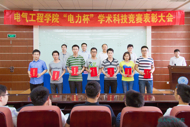 研究生会科技学术中心主席,首先对本次“电力杯”大赛的工作做了总结性汇报,包括前期筹备工作、作品收集情况和作品评审过程等,随后宣读了获奖名单,接着由到场嘉宾为获奖队伍代表颁发了证书。本次大赛为嘉奖同学们在新能源领域做出的积极探索首次设置新能源奖,共有六组作品获得该奖;通过微信公众平台投票,基于微信远程控制的安全节能插座获得了最高人气奖。会场响起热烈的掌声,向获奖同学表示祝贺。