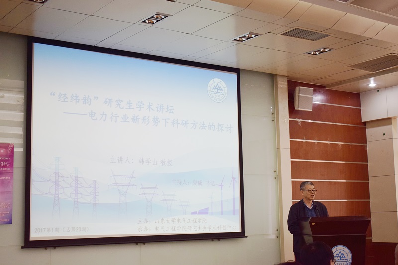 3月23日下午,由我院研究生会学术部主办的第20期“经纬韵”研究生学术讲坛于千佛山校区电力楼四层报告厅举行。此次讲坛的主讲嘉宾为山东大学电气工程学院副院长韩学山教授,讲座的主题为“电力行业新形势下科研方法的探讨”。本次讲坛由电气工程学院党委副书记夏威教授主持。