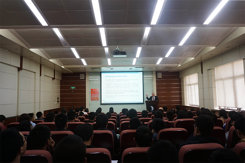 首先,大卫·迪罗谢先生对IEEE协会作了简要介绍,同时介绍了IAS分会的历史和现状。IAS分会创立于1965年,现在会员已经遍布全球,总会员数超过13000人,并且三分之一以上的会员都是近五年注入的新鲜血液。IAS分会拥有4个部门、20个技术团体,研究对象遍及各个工业科技领域。随后,迪罗谢先生对现有以及未来的能源转换方面的工业应用进行了说明和展望。他介绍了已有的5MW级微网锂电池储能系统和逆变控制系统,分析了新型能源转换技术的优势以及当前仍然面临的问题。迪罗谢先生精辟的分析和精准的着眼点让大家获益匪浅。